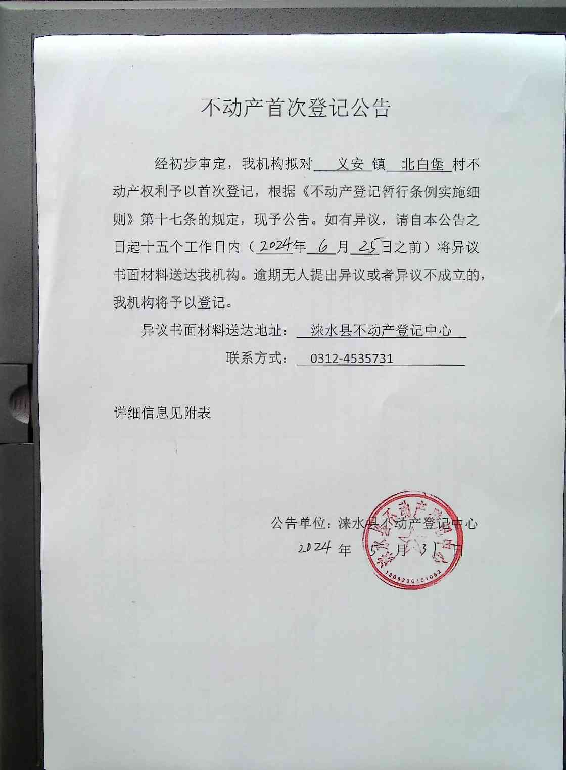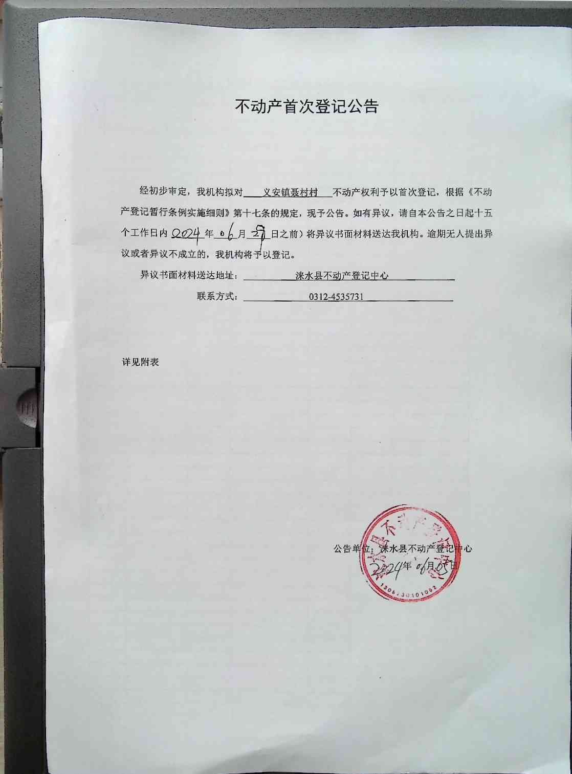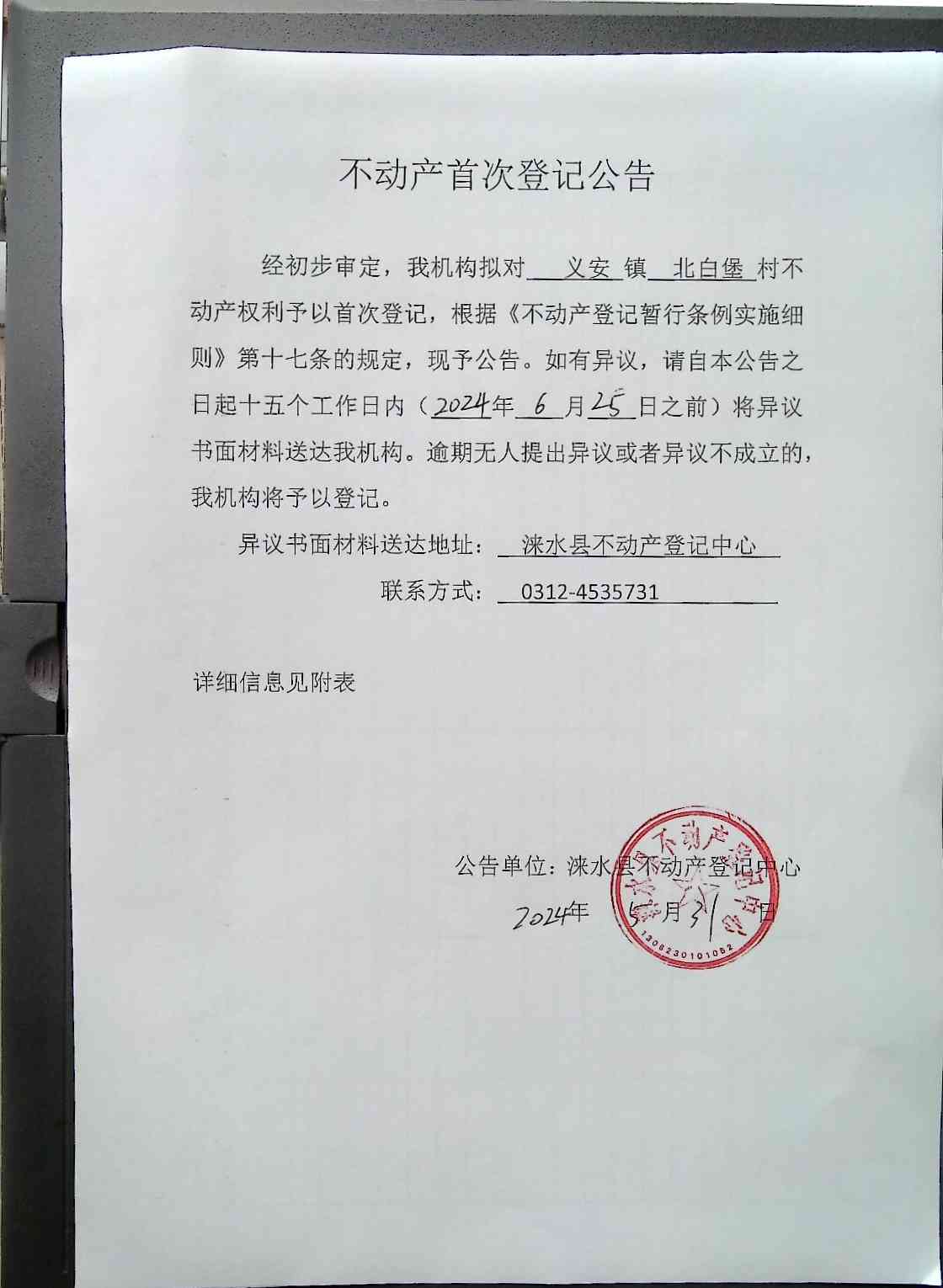 不动产首次登记公告