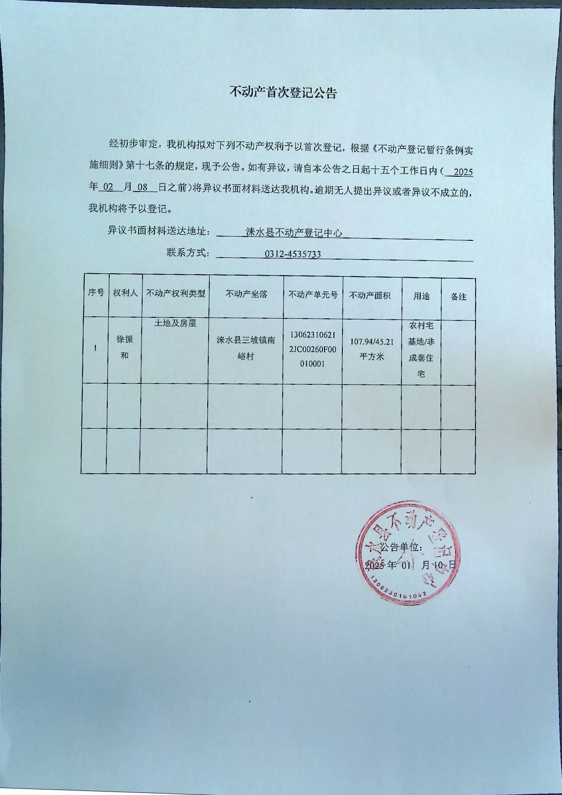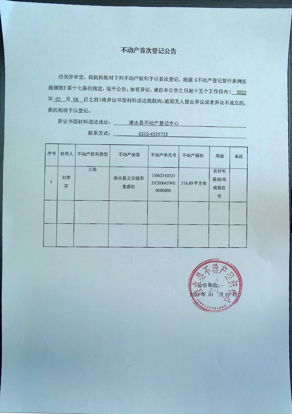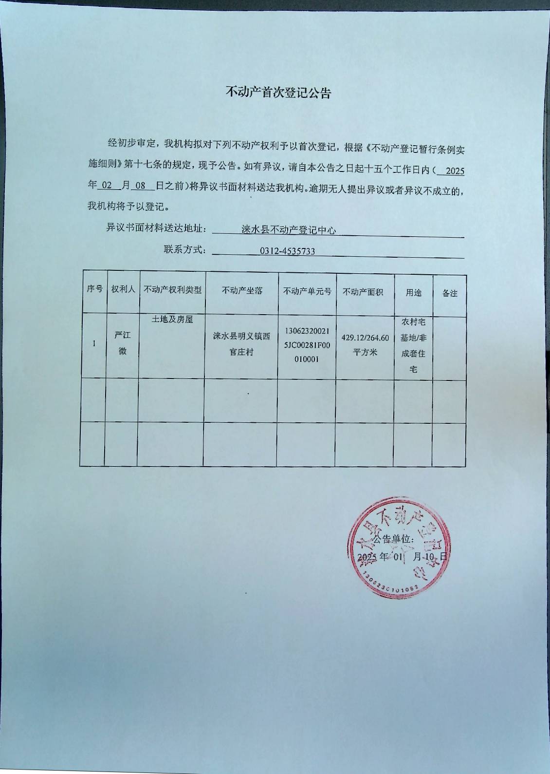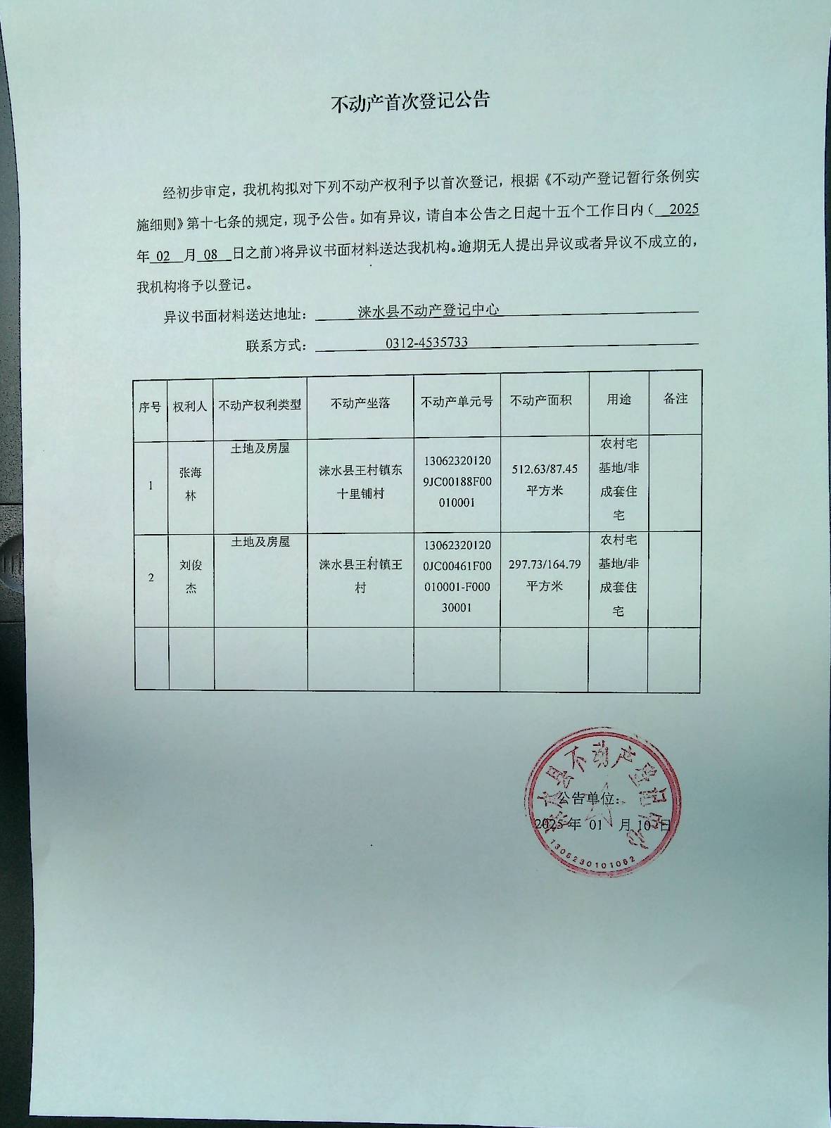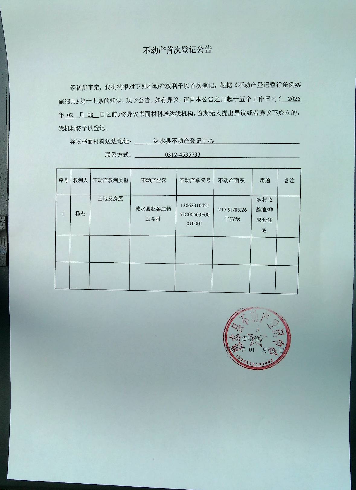不动产首次登记公告
