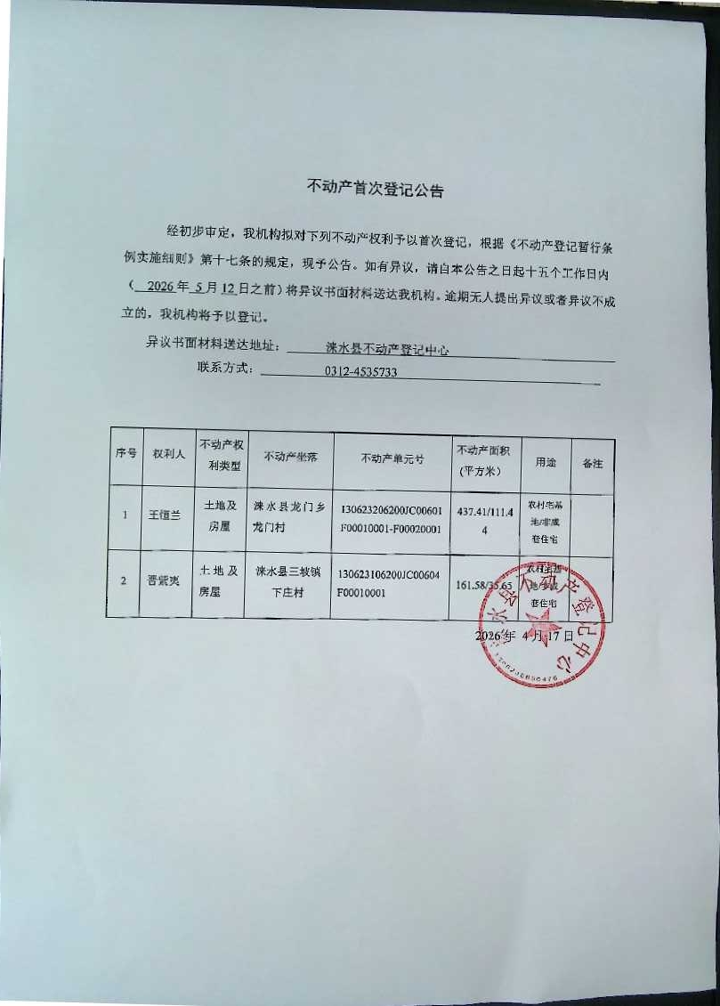 不动产首次登记公告